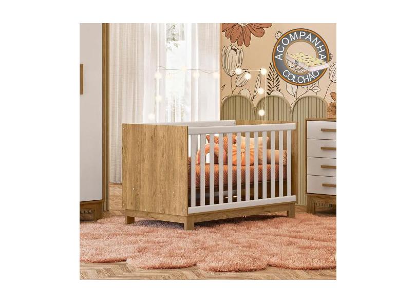 Berço Mini Cama Qencanto Slim 4315 Qmovi Freijó Branco Acetinado + Col