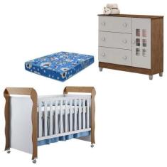 Berço Mirelle e Cômoda Mariah Branco Acetinado Amadeirado com Colchão