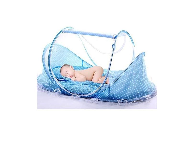 Berço Portátil Mosquiteiro Acolchoado Travesseiro Camping Viagem Piquenique Praia Compacto com Zíper Proteção Bebê Toca Musica (Azul)