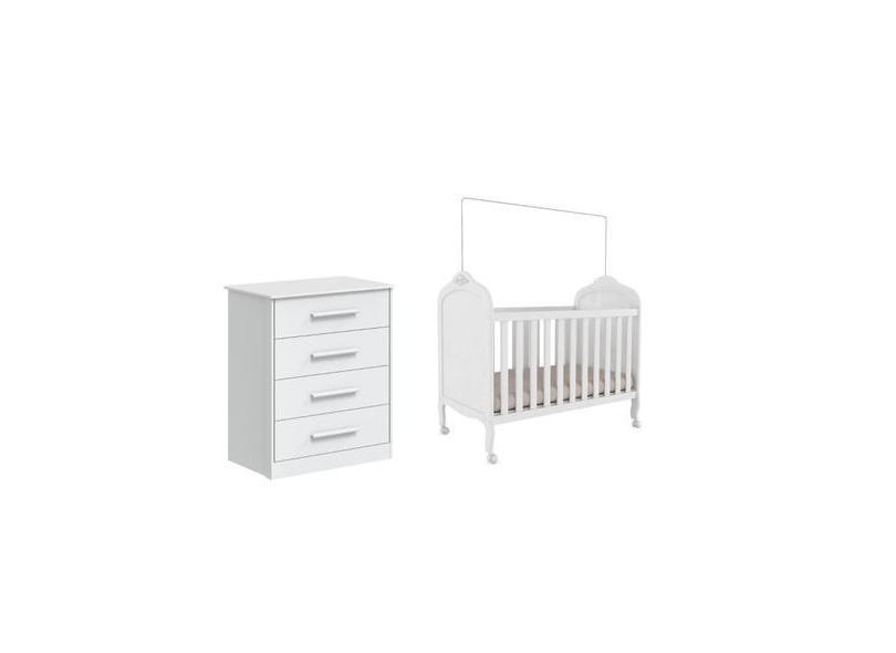 Berço Provençal Elo Cômoda charlo 04 gavetas Moveis Peroba, Branco