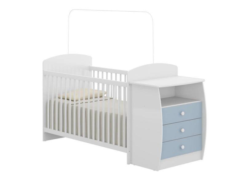 Berço Rafael com Gavetas Branco e Azul para Colchão 130x60