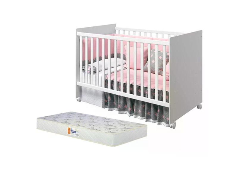 Berço Tico Branco Brilho Com Colchão D18 De 10cm Reller Móveis Branco Brilho