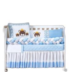 Berço Urso Trançado 12 Pç Saia Box E Mosquiteiro Azul Claro - L2m