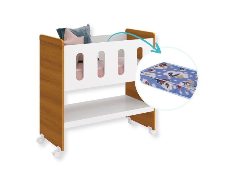 Mini Berço Multifuncional 3 em 1 Branco Fosco/Amad + Colchão