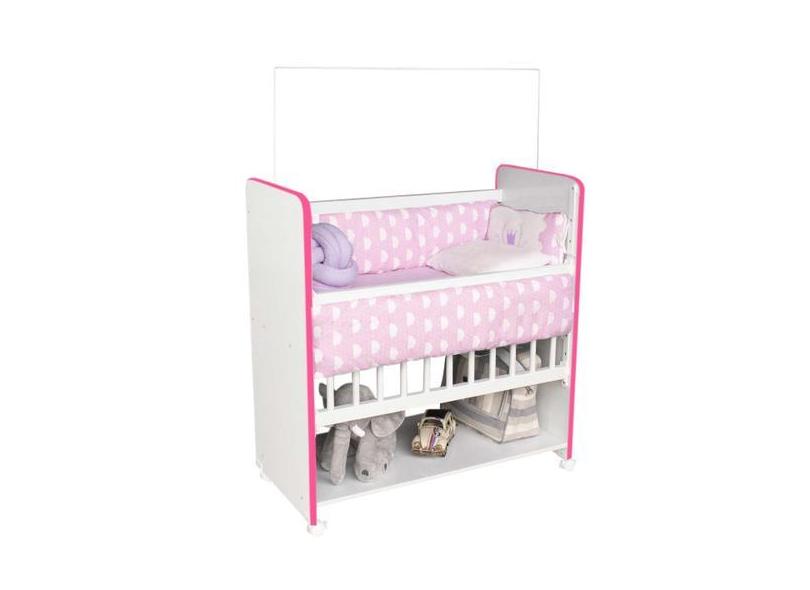 Mini Berço New Baby Rosa/Branco Grade Removível Navega Móveis