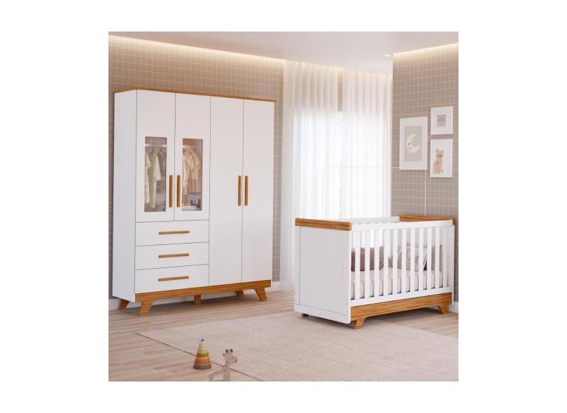 Quarto Bebê Retrô Janelado Completo Berço Americano 2 Em 1 Guarda Roup