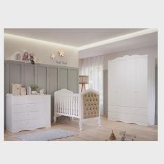 O menor preço encontrado no Brasil para Quarto de Bebê 3 Peças com Berço Capitonê Cômoda 4 Gavetas e Guarda-Ro atualmente é R$ 2.750,85.