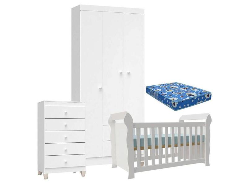 O menor preço encontrado no Brasil para Quarto de Bebê 3 Portas com Gaveteiro Ternura Baby e Berço Lara Branco Brilho com Colchão para Berço Americano - Incorplac atualmente é R$ 1.021,50.