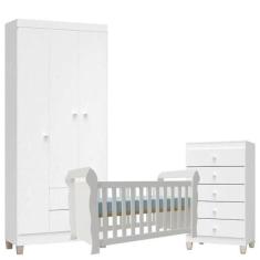 Quarto De Bebê 3 Portas Com Gaveteiro Ternura Baby E Berço Lara Branco