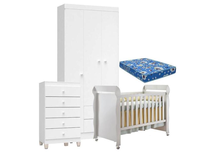 O menor preço encontrado no Brasil para Quarto de Bebê 3 Portas com Gaveteiro Ternura Baby e Berço Mirelle Branco Brilho com Colchão para Berço Americano - Incorplac atualmente é R$ 1.039,50.