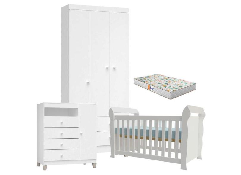 Quarto de Bebê 3 Portas Ternura Baby com Berço Lara Branco Brilho com Colchão Gazin - Incorplac