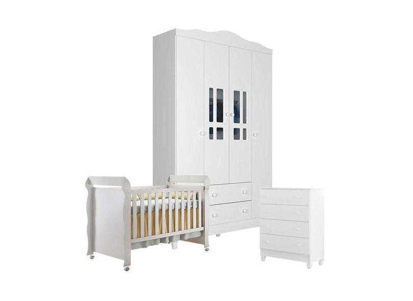 Quarto De Bebê 4 Portas Com Gaveteiro Ariel E Berço Mirelle Branco Bri