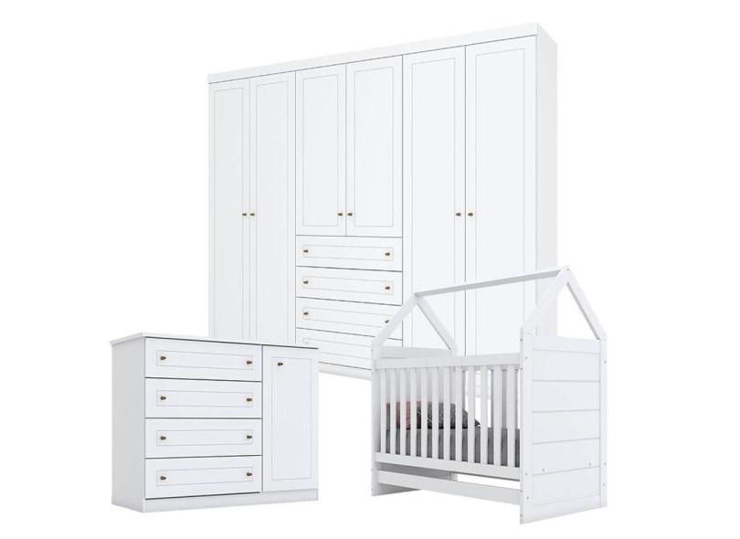 O menor preço encontrado no Brasil para Quarto de Bebê Americano 6 Portas com Berço Montessoriano Branco HP - Henn atualmente é R$ 3.000,27.