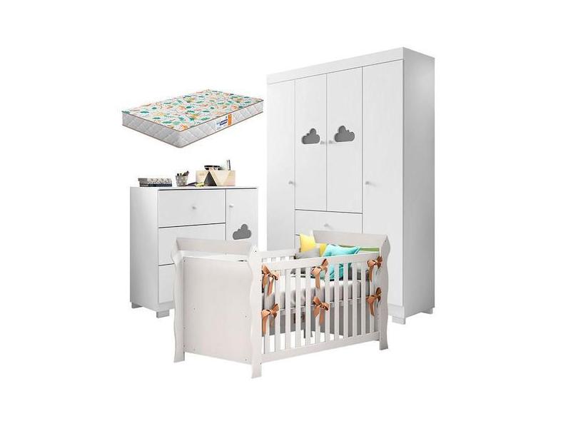 Quarto de Bebê Ane com Berço Americano Lara Branco Brilho com Colchão