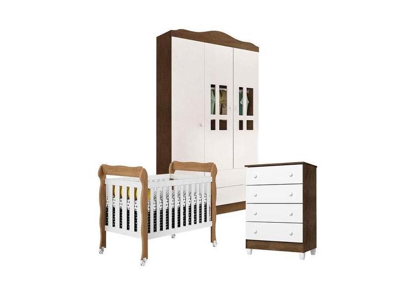 Quarto de Bebê Ariel 3 Portas com Gaveteiro e Berço Americano Lila Bra
