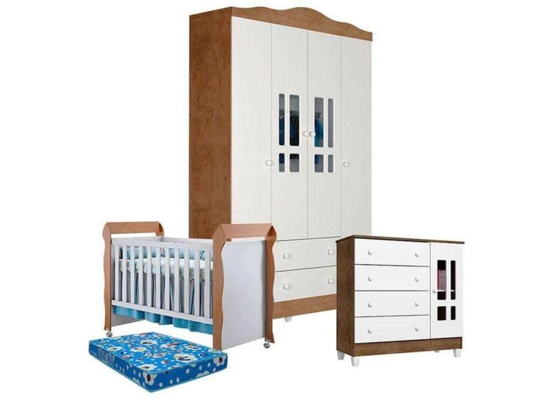 O menor preço encontrado no Brasil para Quarto De Bebê Ariel 4 Portas Com Berço Mirelle Branco Acetinado Amadeirado E Colchão - Carolina atualmente é R$ 1.484,28.