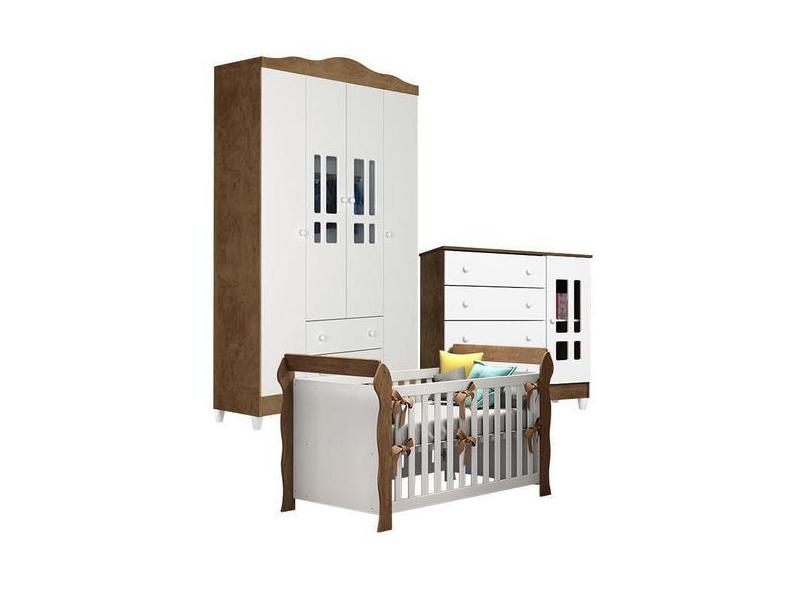 O menor preço encontrado no Brasil para Quarto de Bebê Ariel 4 Portas e Berço Lara Branco Acetinado Amadeirado atualmente é R$ 1.351,80.