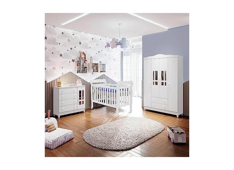 O menor preço encontrado no Brasil para Quarto de Bebê Ariel Berço 3 em 1 Lila Guarda Roupa 4 Portas Cômoda Infantil 4 Gavetas com Porta Branco Carolina Baby atualmente é R$ 1.755,12.