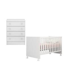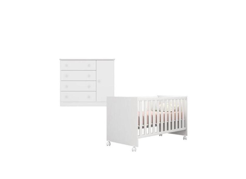 Quarto de Bebê Berço c/ Rodízios e Cômoda Doce Sonho Branco Qmovi