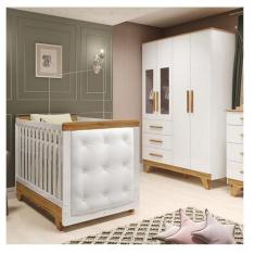 Quarto de Bebê Berço com Capitonê e Guarda-roupa com Janelas 100% Mdf
