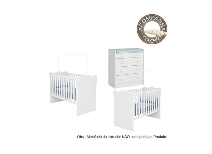 Quarto de Bebê Berço Gemeos Colchão Nana Nenem e Cômoda Doce Sonho Bra