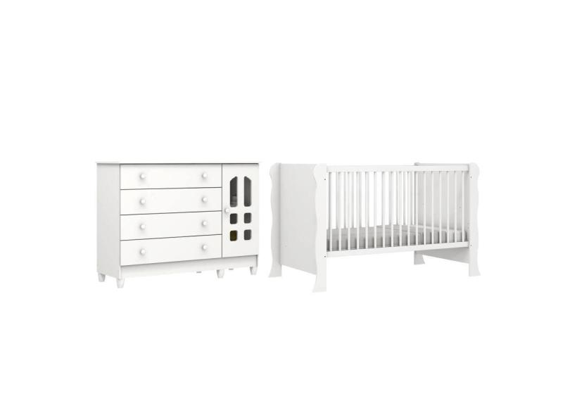 Quarto de Bebê Berço Mini Cama Raissa Cômoda Infantil 4 Gavetas com Fraldário Gran Selena Branco Carolina Baby