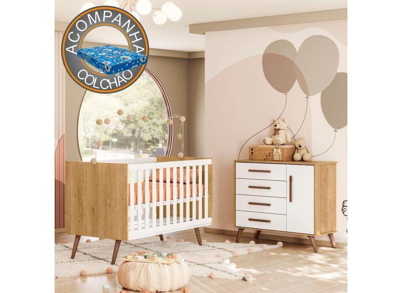 O menor preço encontrado no Brasil para Quarto de Bebê com Berço Americano 3820 e Cômoda Infantil 3825 Qencanto Retrô Qmovi Freijó Branco Acetinado + Colchão Ortobom atualmente é R$ 755,16.