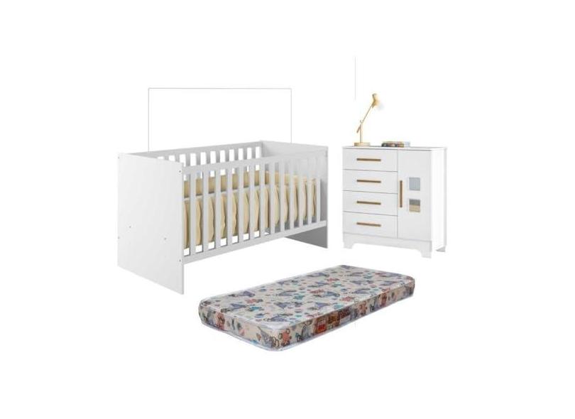 O menor preço encontrado no Brasil para Quarto de Bebê com Berço com Colchão Suporte Life 100% Mdf e Cômoda 4 Gavetas 1 Porta Fly 100% Mdf Branco atualmente é R$ 812,18.