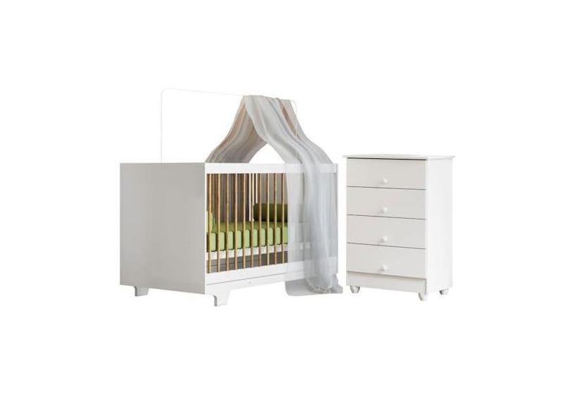 Quarto de Bebê com Berço Mini Cama 100% Mdf Flocos e Cômoda de Bebê 100% Mdf 4 Gavetas Soft Life Branco