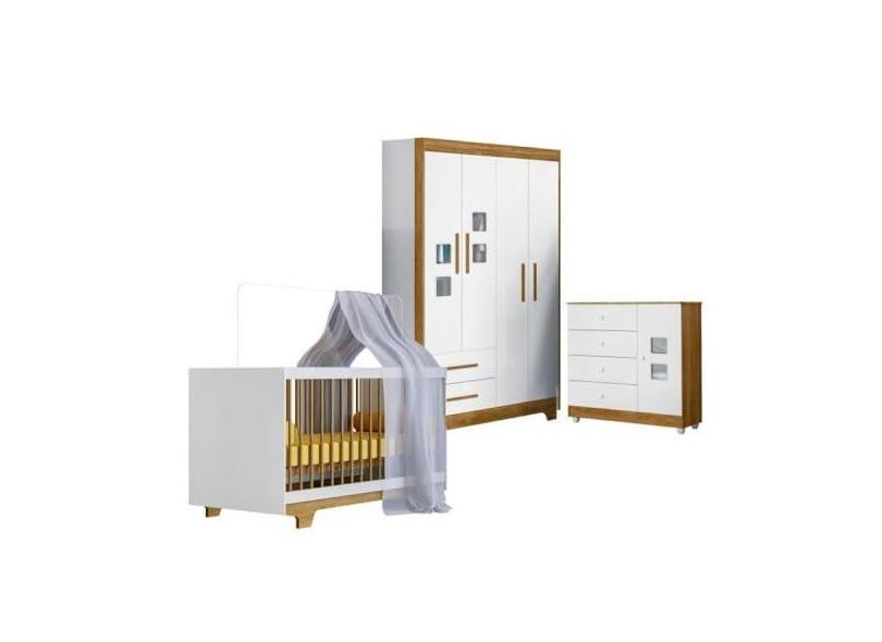 O menor preço encontrado no Brasil para Quarto de Bebê com Berço Mini Cama, Cômoda 1 Porta 4 Gavetas e Roupeiro 4 Portas 2 Gavetas Fly Branco/madeirado Ypê atualmente é R$ 1.525,27.