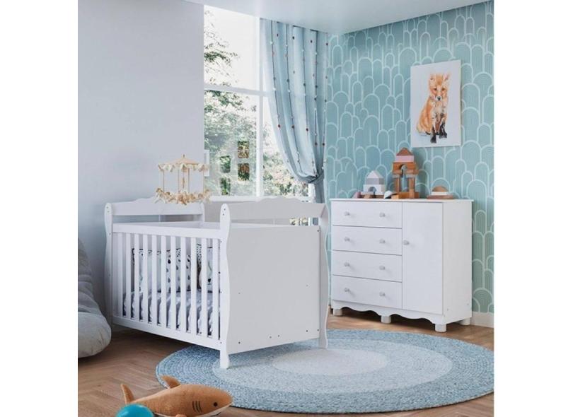 Quarto de Bebê com Cômoda 1 Porta e Berço Americano Nina Espresso Móveis Branco Brilho