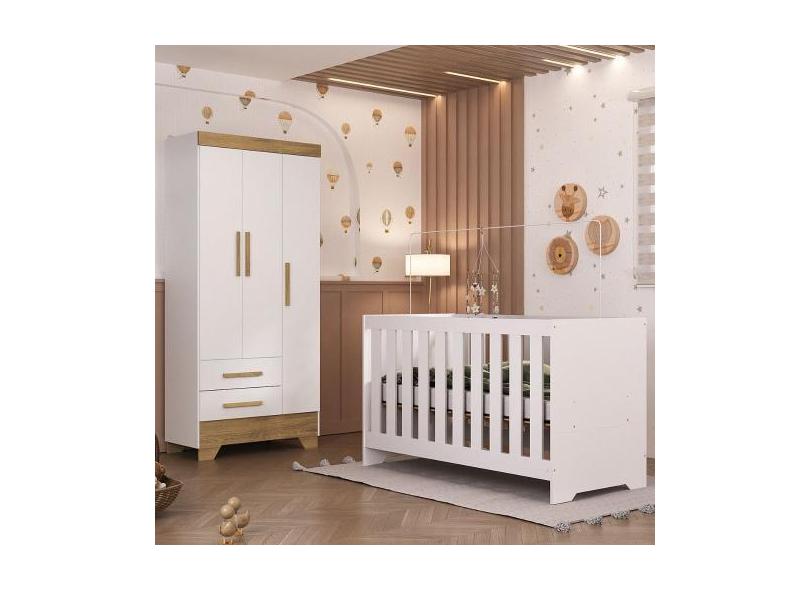Quarto de Bebê com Guarda Roupa 3 Portas 2 Gavetas Berço 3 em 1 Catave