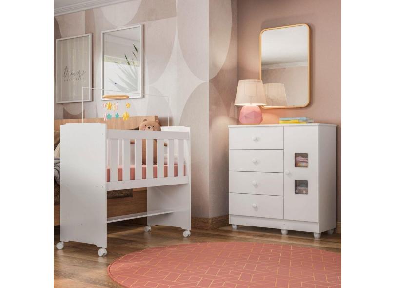Quarto de Bebê com Mini Berço Tigus e Cômoda Life Branco