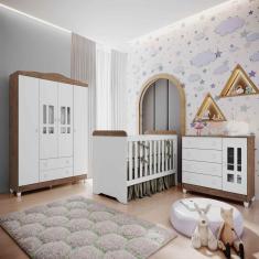 Quarto De Bebê Completo Berço 3 Em 1 Roupeiro Cômoda Branco