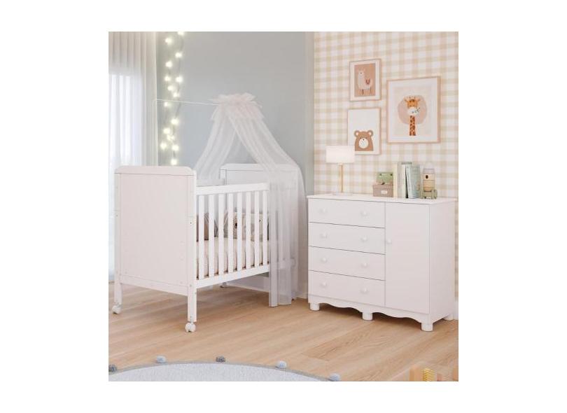 Quarto de Bebê Completo Berço Americano Cloe 2 em 1 Cômoda 1 Porta 3 G