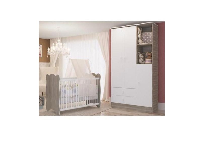 Quarto de Bebê Completo Berço com Guarda Roupa 3 Portas 2 Gavetas 2 Ni