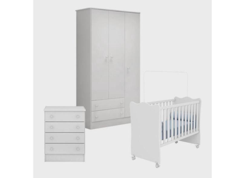 O menor preço encontrado no Brasil para Quarto de Bebê Completo Berço Com Rodízios Guarda Roupa 3 Portas e Cômoda Doce Sonho Branco Branco - Móveis Leartam atualmente é R$ 1.119,00.