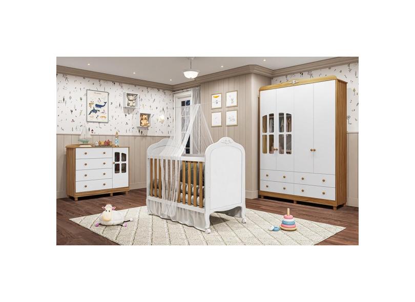 O menor preço encontrado no Brasil para Quarto de Bebê Completo Berço Mini Cama Capitonê Guarda Roupa e Cômoda Janela Elô New Móveis Peroba atualmente é R$ 2.880,91.