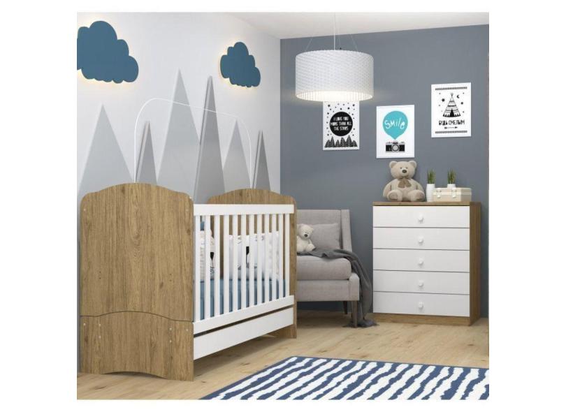 Quarto de Bebê Completo com Berço Mini Cama e Cômoda Lápis de Cor com Colchão Espresso Móveis Branco/Rústico