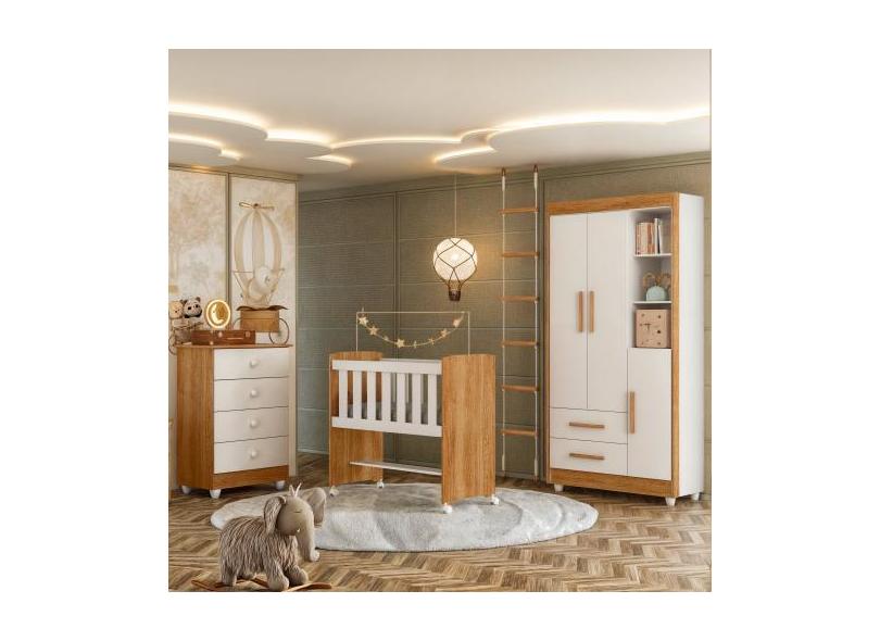 Quarto de Bebê Completo com Cômoda, Mini Berço com Colchão e Guarda Ro