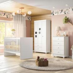 O menor preço encontrado no Brasil para Quarto de Bebê Completo com Guarda Roupa 3 Portas, Cômoda e Berço Life Siena Móveis Branco atualmente é R$ 1.474,25.