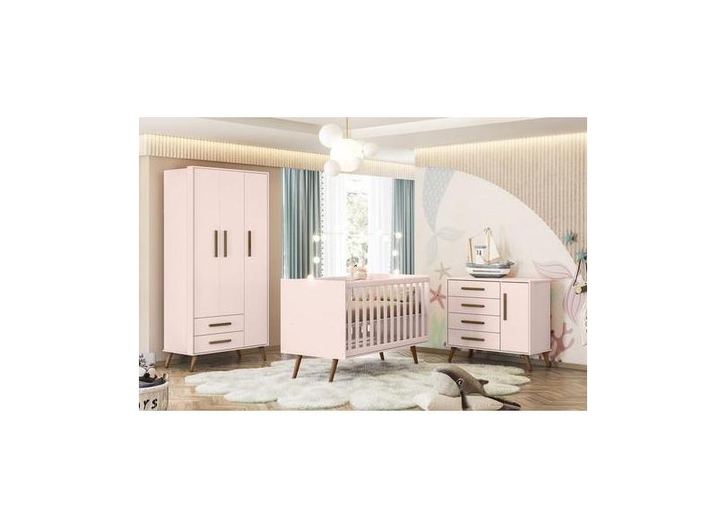 Quarto de Bebe Completo Q Encanto Retrô Rosa Qmovi