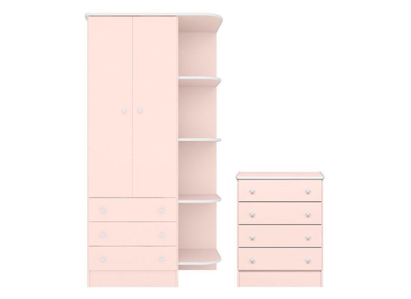 O menor preço encontrado no Brasil para Quarto de Bebê Doce Sonho com Roupeiro 825 e Cômoda 777 Qmovi Rosa Acetinado atualmente é R$ 629,16.