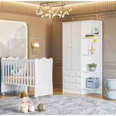 Quarto de Bebê Doce Sonho Roupeiro 825 + Berço 1 Qmovi Branco