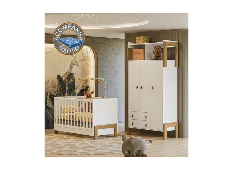 Quarto de Bebê Fantasia com Roupeiro 4375 e Berço 4300 Qmovi Branco Ac