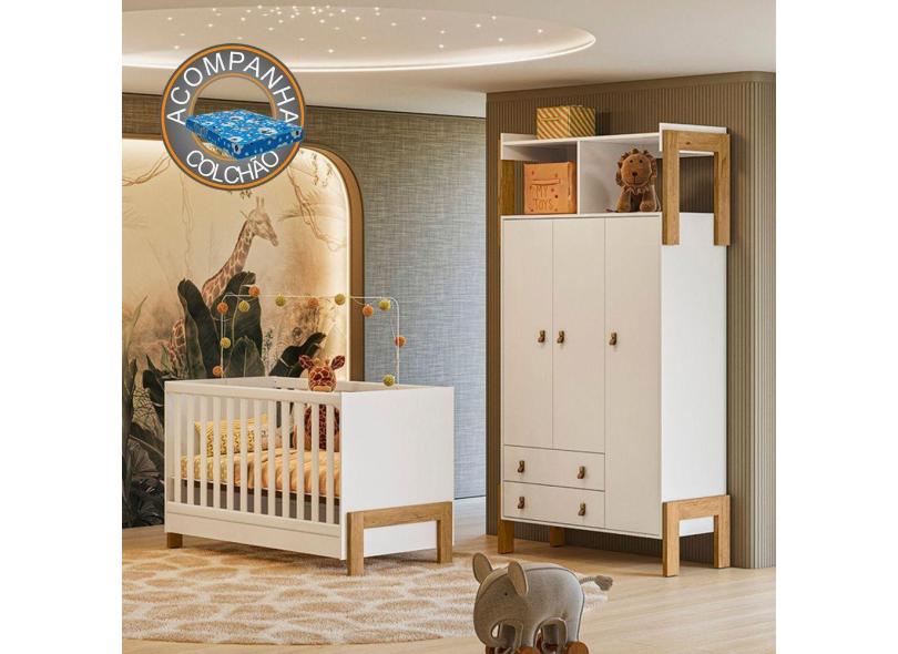 O menor preço encontrado no Brasil para Quarto de Bebê Fantasia com Roupeiro 4375 e Berço 4300 Qmovi Branco Acetinado + Colchão Ortobom atualmente é R$ 864,36.