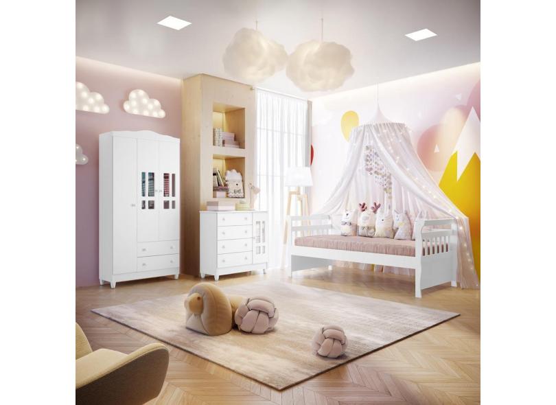 Quarto de Bebê Guarda Roupa 3 Portas Cômoda com Fraldário Ariel Cama da Babá Júlia Branco Carolina Baby