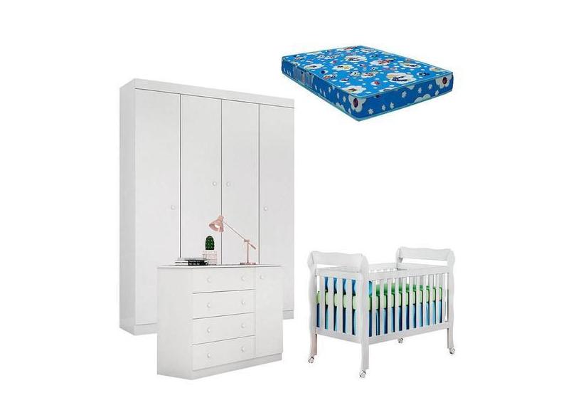 Quarto de Bebê Helena com Berço Lila Branco Brilho com Colchão Phisica