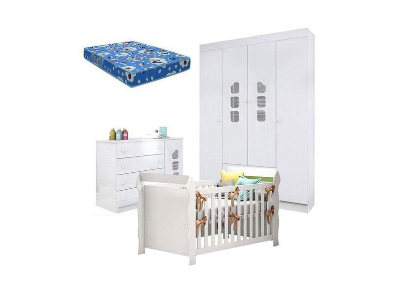 Quarto de Bebê Lívia com Berço Americano Lara Branco Brilho e Colchão