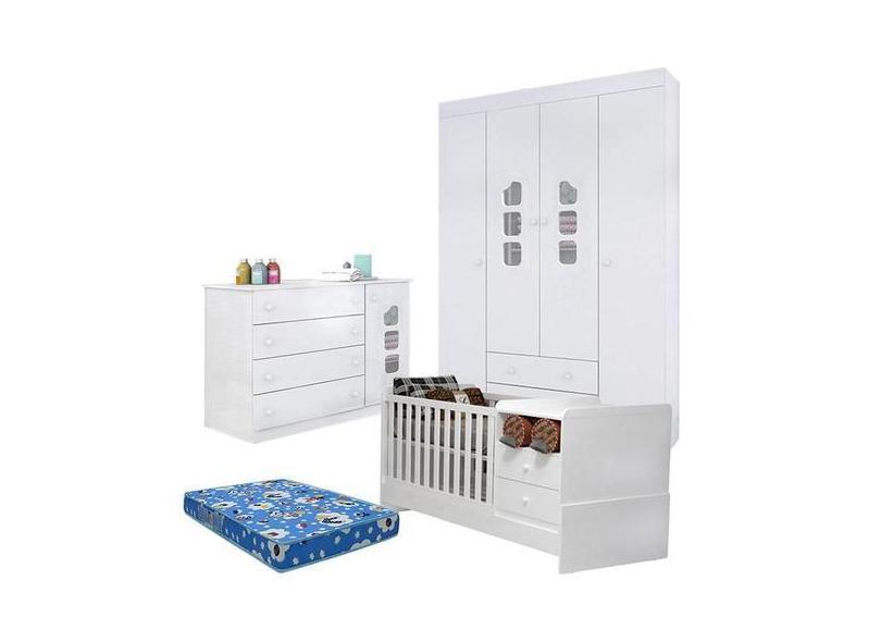 Quarto de Bebê Lívia com Berço Multifuncional Selena Branco Brilho com